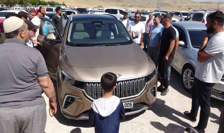 Türkiye’nin yerli otomobili Togg, Van’ın merkez Tuşba ilçesindeki ikinci el açık oto pazarında ilk kez görüldü. Yüzlerce aracın görücüye çıktığı açık oto pazarında, yerli otomobil yoğun bir ilgiyle karşılaştı. Geçtiğimiz günlerde yerli aracını teslim alan İsa Özçoban isimli vatandaş, Togg’u tanıtım için açık oto pazarına getirdi. Burada ilk kez yerli aracı gören vatandaşlar, aracı incelemeye başladı. Bol bol hatıra fotoğrafı da çeken vatandaşlar, aracın kullanımıyla ilgili sahibinden bilgi aldı.
