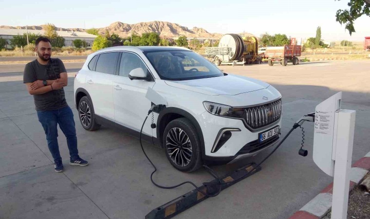 Türkiye’nin yerli ve milli elektrikli otomobili Togg’un talihlileri araçlarını teslim almaya devam ediyor. Ocak ayında başvurusunu yaptığı T10X aracını dün teslim alan talihli Mikail Karabulut, aracını memleketi Yozgat’ın Yerköy ilçesine getirdi. 180 KW’lık şarj istasyonunda 35 dakika sürede aracının yüzde yüz doluluk oranına geldiğini söyleyen Karabulut, 400 kilometre yok kat edebildiğini belirtti. Aracı sürmenin çok keyifli ve heyecanlı olduğunu vurgulayan Karabulut, kurada çıktığı günden itibaren aracına tekliflerin geldiğini ama aracı satmak için değil kullanmak için aldığını söyledi.