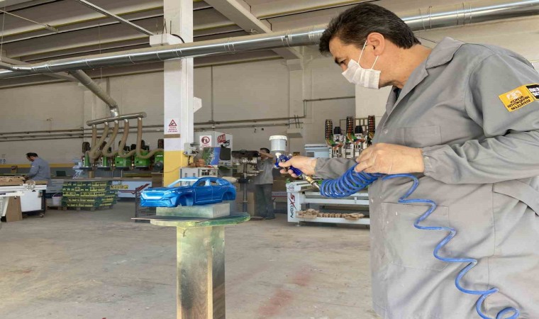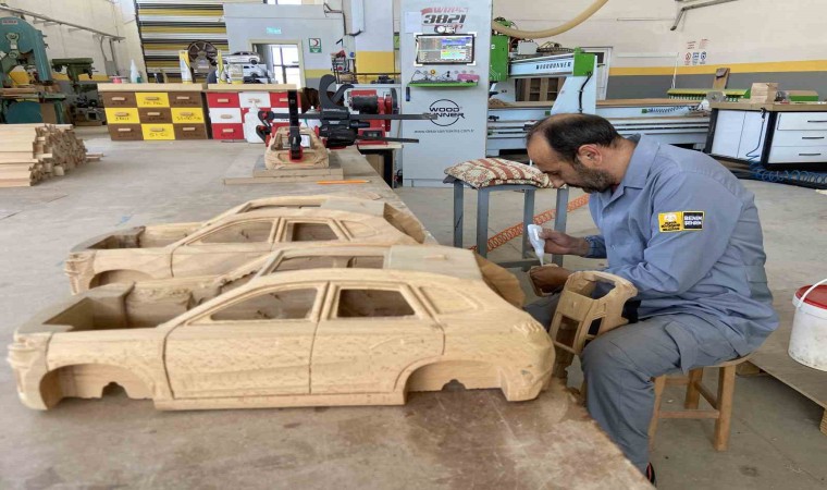 Atölyede makine teknikerliği yapan Alaaddin Erdoğan, TOGG’un ilk yayınlandığı zaman fotoğraflarını aldıklarını ve bilgisayara indirdiklerini anlatarak, “Önden, yandan, üstten görüntülerini 3 boyutlu modellerini nasıl yapabiliriz diye düşündük. 4 aylık AR-GE sürecinden sonra tasarımımızı bitirdik. Sonra makineler yardımıyla ahşabı işlemeye başladık. TOGG, 6 renk çıkardı. Biz de 7. renk olarak Konya’ya özgü ‘Çatalhöyük’ modelimizi çıkardık. Ona ahşabın kendi özgün kayın rengini vermeye çalıştık. 15 parça halinde tamamen ahşaptan üretiliyor. TOGG’un bütün detaylarını vermeye çalıştık. Tüm ince detaylarını ahşaba aktarmaya çalıştık. Bizim için de büyük bir gurur tabii ki. Özellikle ahşap olması çok iyi. Çocukların ahşaba dokunabilmesi önceliğimiz. 7. renk olarak ‘Çatölhöyük’ modelimizi de çıkarmamız bizim için ayrıca bir gurur” dedi.