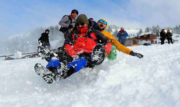 Tohtamur Yaylası’na ulaşıldığında etkinlik bambaşka bir boyuta taşındı. Sporcular, karla kaplı yaylada poşetlerle kayarak adeta çocukluklarına geri döndü. Eğlenceli anlar yaşayan grup hem spor yapmanın hem de doğayla iç içe olmanın keyfini doyasıya çıkardı.