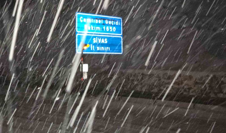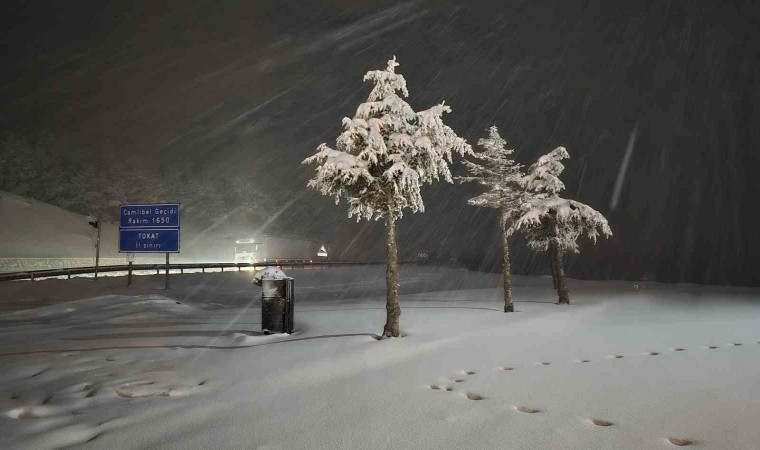Tokat-Sivas karayolu Çamlıbel Geçidi’nde kar yağışı etkili oldu. Kar nedeniyle görüş mesafesi sıfıra indi.