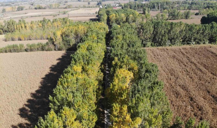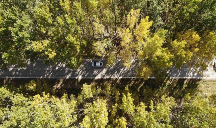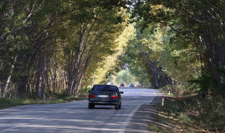 Tokat-Zile Karayolu’nda kavak ağaçlarının oluşturduğu tünelde sonbaharın gelmesiyle birlikte renk cümbüşü oluştu.