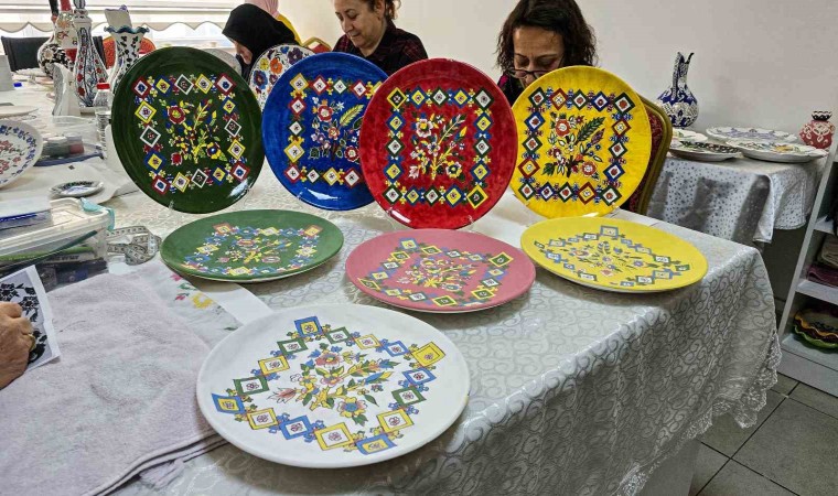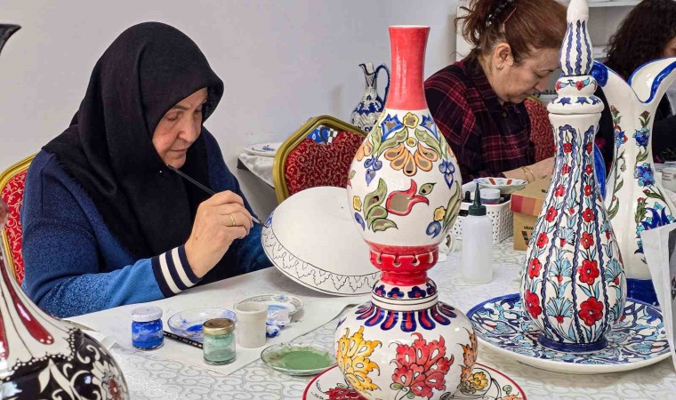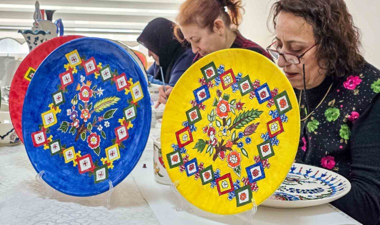 Boş zamanlarını değerlendirmek için kursa katılan kursiyerler ise çini sanatıyla Tokat yazması motiflerini ölümsüzleştirmenin mutluluğunu yaşıyor.