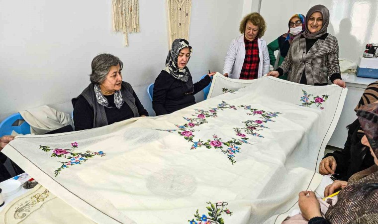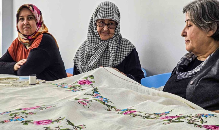 Emekli olduktan sonra el sanatları kursuna katılan Ayşe İroç ise bu kursa 2 senedir katıldığını ve sandıkta kalan eski işlemeleri kızı için değerlendirdiğini belirtti.