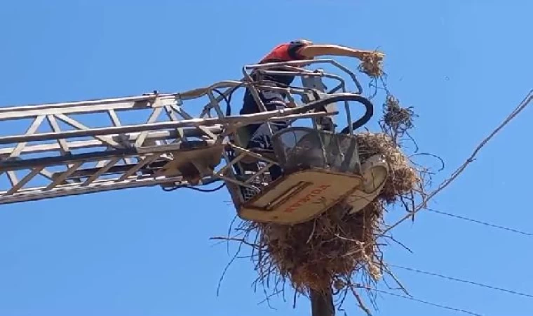 Üyük köyünde elektrik direklerine yuva yapan leylek, ayağına takılan ip nedeniyle hareketsiz kaldı. Durumu fark edenler, Zile Belediyesi İtfaiyesi ile elektrik dağıtım şirketine haber verdi. İhbarla gelen ekipler, yavru leyleği kurtarmak için çalışma başlattı. İtfaiye aracı ile indirilen leylek, ayağına dolanan ip çözüldükten sonra yuvasına bırakıldı. (DHA)