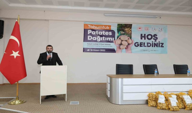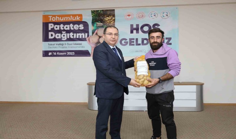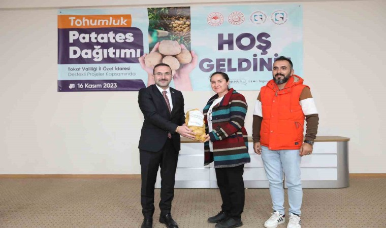 Tokat Valiliği İl Özel İdaresi destekli projeler çerçevesinde Tokat Gaziosmanpaşa üniversitesi tarafından “Tohumluk Patates Dağıtımı” töreni gerçekleştirildi. Reşadiye Meslek Yüksekokulunda düzenlenen törene Reşadiye Kaymakamı Ahmet Tan, Belediye Başkanı Mustafa Yılmaz, Rektör Yardımcısı Prof. Dr. Rasim Koçyiğit, Ziraat Fakültesi Dekanı Prof. Dr. Rüstem Cangi, Tarım İl Müdürü Orhan Şahin, Reşadiye Meslek Yüksekokulu Müdürü Öğr. Gör. Dr. Oğuzhan Sönmez ve üreticiler katıldı.Proje yürütücüsü Doç. Dr. Yasin Bedrettin Karan yapmış olduğu konuşmada proje ile ilgili bilgiler aktardı. Karan, patatesin ana vatanı ve tarihçesinden bahsederek patatesin insan sağlığı için önemine değindi. Patates yetiştiriciliğinde tohumluk üretiminin önemine değinen Karan, dağıtılan tohumluk çeşidinin milli ve yerli çeşit olduğunu ifade etti.
