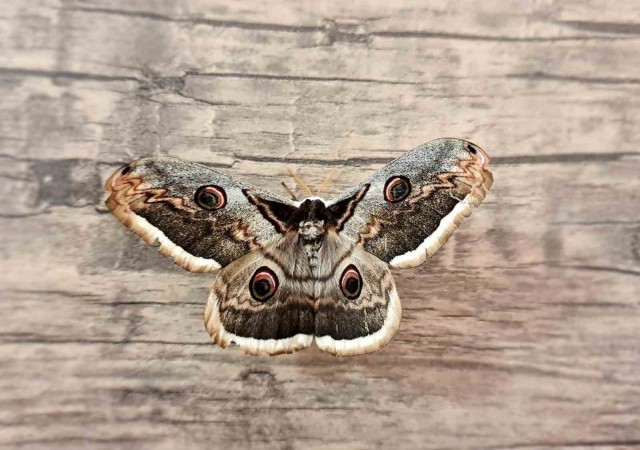 Tokat'ın Zile ilçesinde yaşayan Serdal Deniz, bahçesinde rastladığı dev Tavus güvesi olarak bilinen güve türünü fotoğrafladı. Güvenin etkileyici 14 santimetre kanat açıklığı ve zarif desenleriyle dikkat çekti. Bu eşsiz güveyi fotoğraflayan Deniz, çekimlerin ardından doğaya geri bıraktı. Dev Tavus Güvesi, aslında Saturnia pyri adıyla bilinen bir güve türüdür, ancak halk arasında genellikle kelebek olarak adlandırılır. Bahar ve yaz aylarında Türkiye'nin çeşitli bölgelerinde görülen bu güve, kanat açıklığı bakımından 15-20 santimetreye kadar ulaşabilir. Geçtiğimiz dönemlerde Dev Tavus Güvesi, Osmaniye ve Bolu gibi bölgelerde de gözlemlenmiştir.