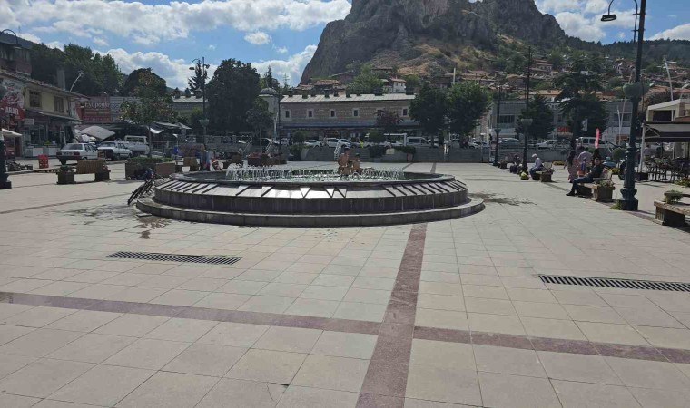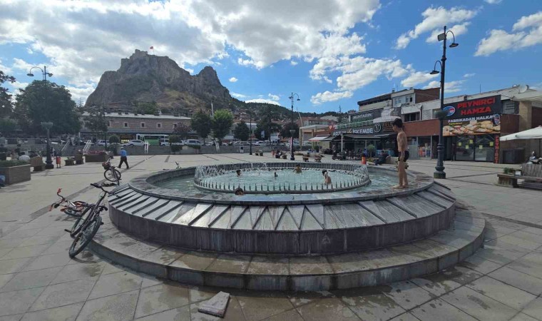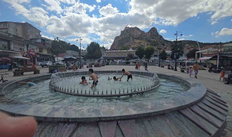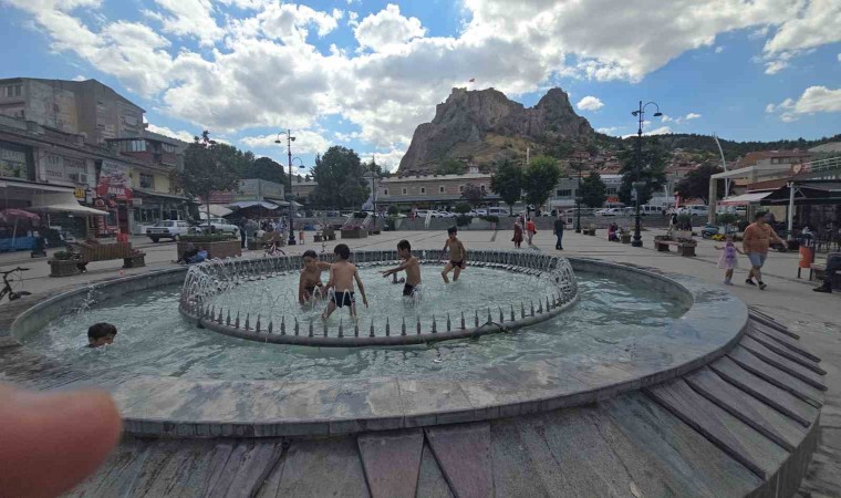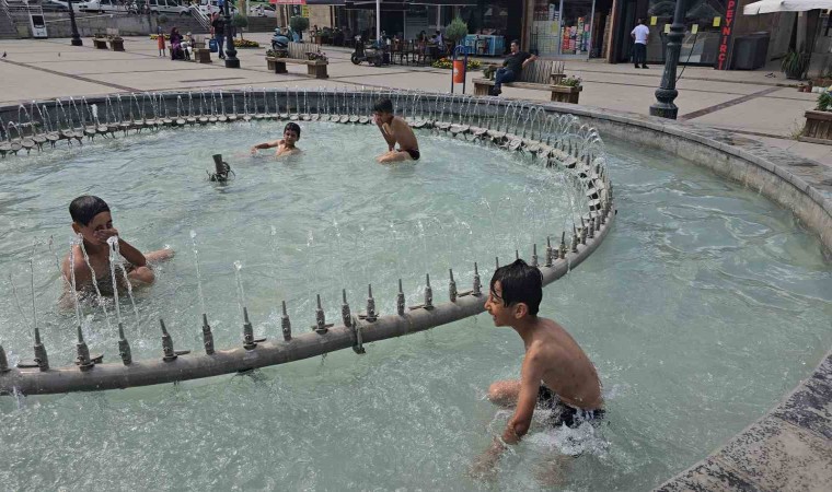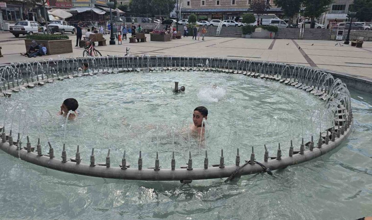 Tokat’ta etkili olan eyyam-ı bahur sıcaklarından bunalan çocuklar, serinlemek için Tarihi Taşhan önündeki süs havuzlarına akın etti.