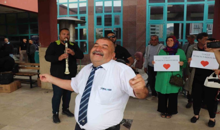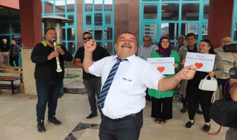 Tokat’a gelen üniversite öğrencileri klarnet ve darbukayla karşılandı, Otobüs firması çalışanın oynadığı oyun havaları renkli görüntülere sahne oldu.