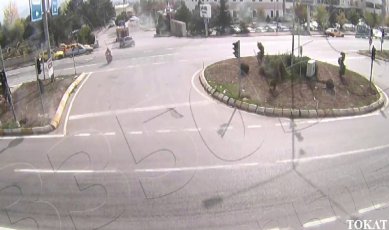 Tokat’ta kavşaklarda meydana gelen trafik kazaları Kent Güvenlik Yönetim Sistemi (KGYS) kameralarına yansıdı, otomobille çarpışan motor sürücüsünün tepkisi dikkat çekti.