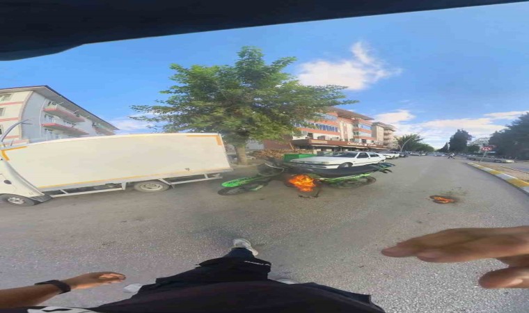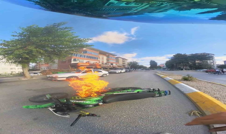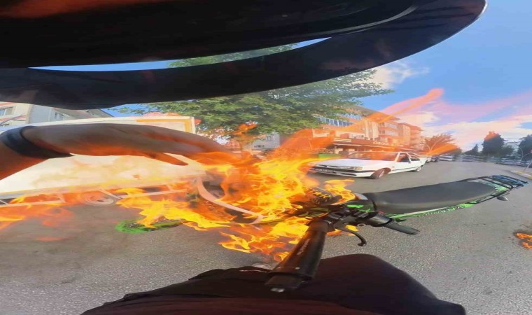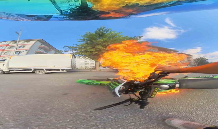İlçeye bağlı Turgut Özal Caddesi’nde seyir halinde olan Arda Akman idaresindeki motosiklet, motor kısmından aniden alev aldı. Alevler kısa sürede motosikletten yola sıçradı ve tehlikeli anlar yaşandı. Akman, hızla motosikletinden inerek güvenli bir alana geçti. Çevredeki vatandaşların hızlı müdahalesiyle yangın tüpü ve su kullanılarak alevler söndürüldü. Yaşanan bu olay, Akman’ın kask kamerasına anbean yansıdı. Şans eseri olayda kimse yaralanmazken, "Hayalet Sürücü" filmindeki sahneleri andıran anlar sosyal medyada dikkat çekti.