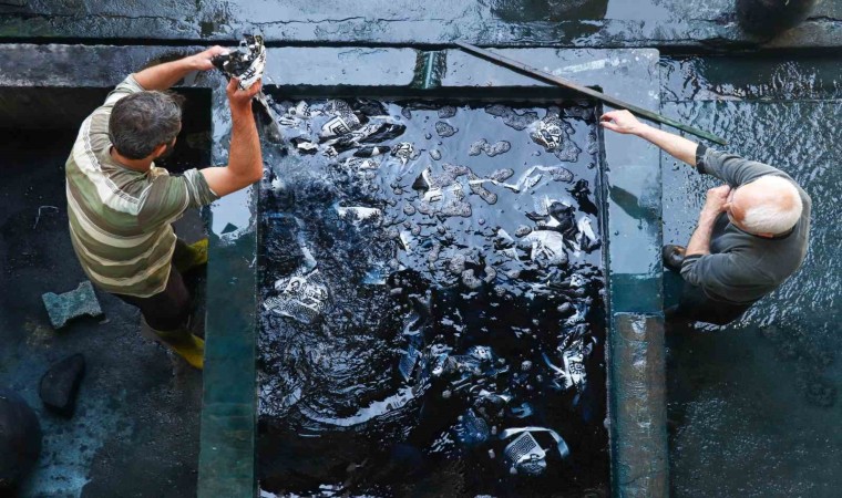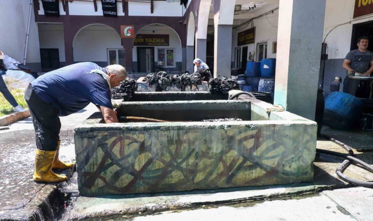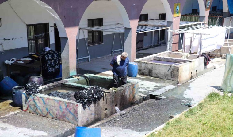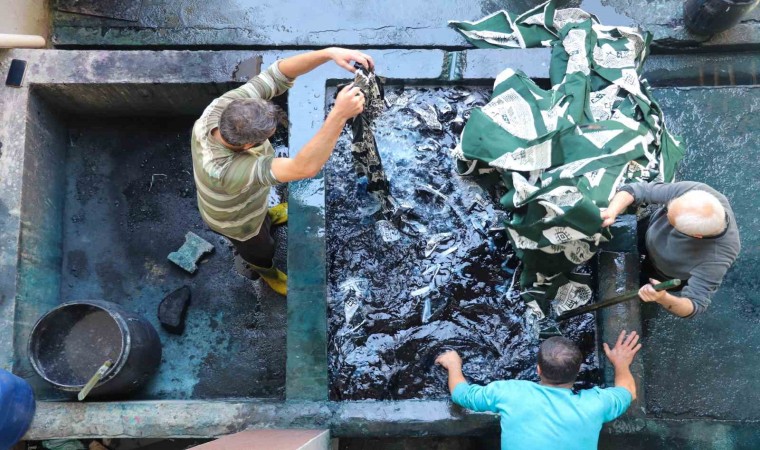 Tokat’ta eski usulle yapılan kumaş boyama işlemi, Hindistan’daki toplu çamaşır yıkama alanlarını andırıyor.