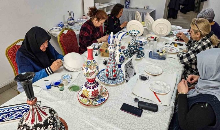 Tokat Belediyesi’nin kadınlar için açtığı merkezde çini sanatı kursuna katılan kursiyerler, hem hobi hem de meslek ediniyor.