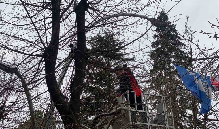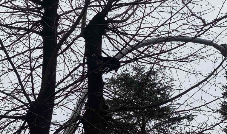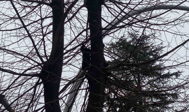 Tokat’ta bir ağaca tırmanan yavru kediyi itfaiye ekipleri kurtardı. O anları vatandaşlar film izler gibi izledi.