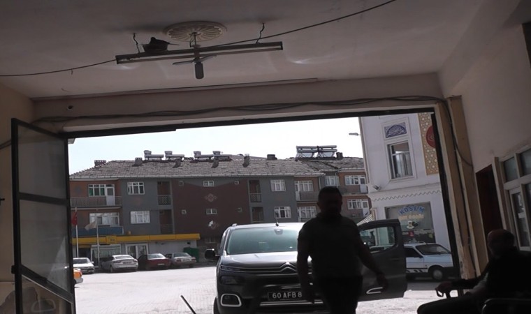 Tokat’ın Sulusaray ilçesinde bir lastikçi dükkanında floresan lamba üzerine yuva yapan kumru görenlerin dikkatini çekiyor.