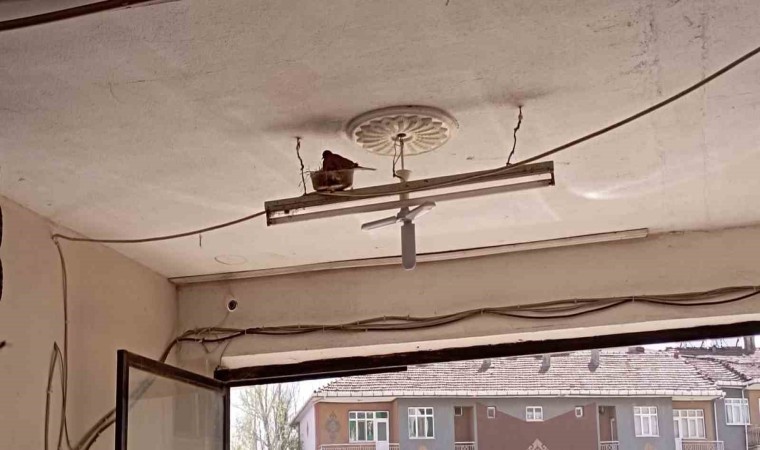 Fatih Çakar, “Bu kumrunun buraya gelmesi üçüncü senesi. Hayvan daha önce de buraya gelerek lamba üzerine çöp koyuyordu. Koyduğu çöpler durmayıp sürekli yere düşüyordu. Baktım kumru yuva yapmakta zorlanıyor, ben de tası aldım oraya yapıştırdım. Hayvanın bu üçüncü senesi. Kaç tane yavruladı bilmiyorum. Biz üstümüze düşeni yaptık. Diğer kumrular için de yanına bir yuva daha yapacağım. Sürpriz bir olay sesten de huylanmıyor. Bize de alıştı. Bazen omuzumuza bile konuyor. Onunla arkadaş olduk” dedi.