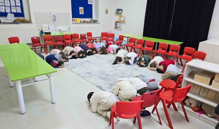 Tokat’ta 1-7 Mart Deprem Haftası kapsamında yapılan deprem tatbikatları, Öğretmen Rukiye Bumin Sarıer Anaokulu’nda büyük ilgi çekti. Minik öğrencilere deprem anında nasıl hareket etmeleri gerektiği adım adım öğretildi.