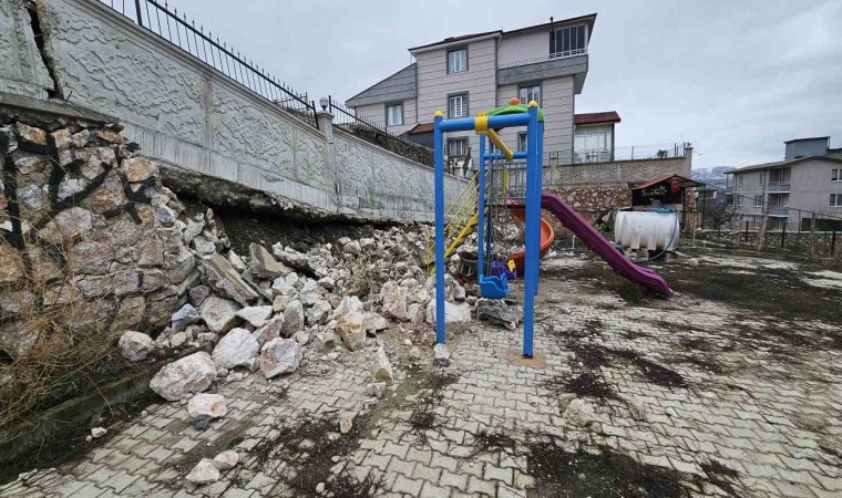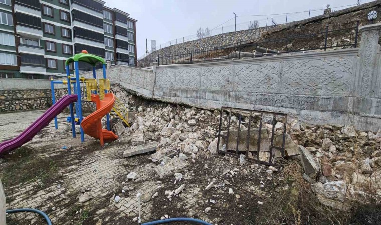 Tokat’ın Kaşıkçıbağları Mahallesi’nde bulunan bir sitenin istinat duvarı sitenin çocuk oyun parkına çöktü. Parkta oyun oynayan çocuğun bulunmaması olası faciayı önledi.