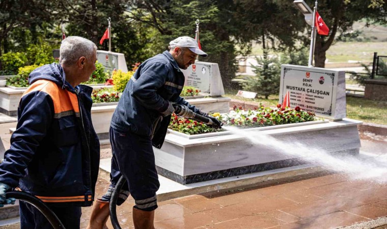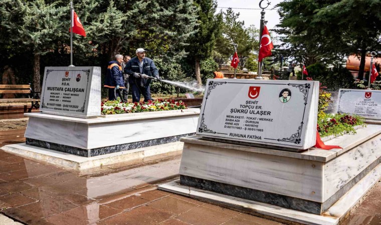 Tokat Belediyesi Temizlik İşleri Müdürlüğü ekiplerince kentteki şehitlikte bulunan mezarların etrafına temizlik işlemi yapıldı. Mezarların etrafları yabani otlardan temizlenirken yerler ise suyla yıkandı.