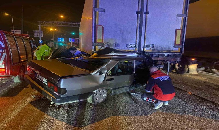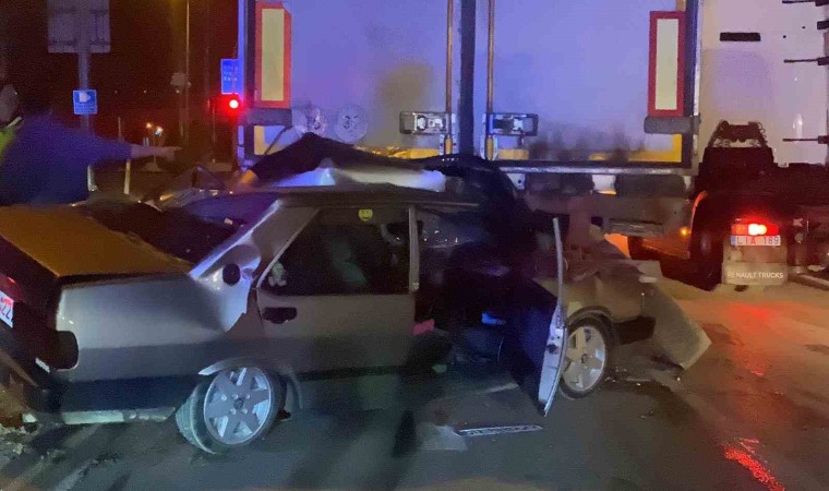 Tokat’ın Erbaa ilçesinde tıra ok gibi saplanan Tofaş otomobilde sıkışan sürücü,