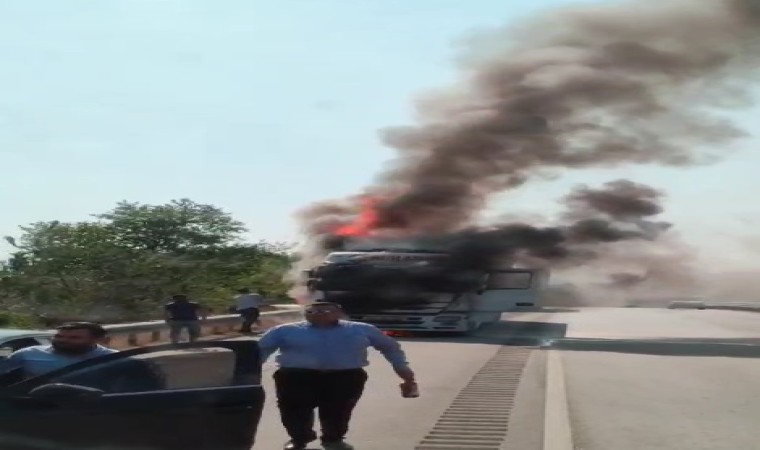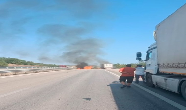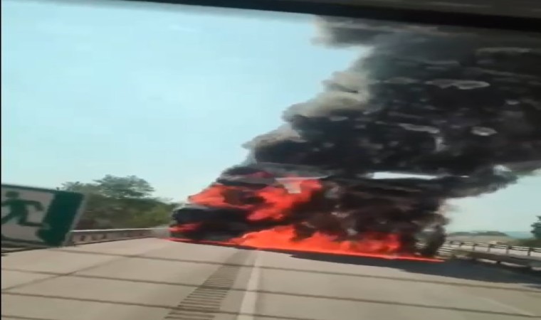 Tokat’ta alev topuna dönen tır kullanılamaz hale geldi.