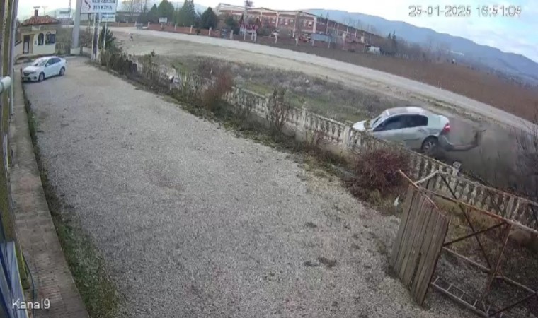 Güvenlik kamerası görüntülerinde aracın kontrolden çıkarak hızla duvara çarptığı görülürken, kazayla ilgili soruşturma devam ediyor.