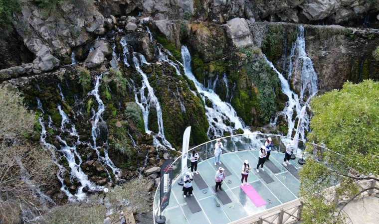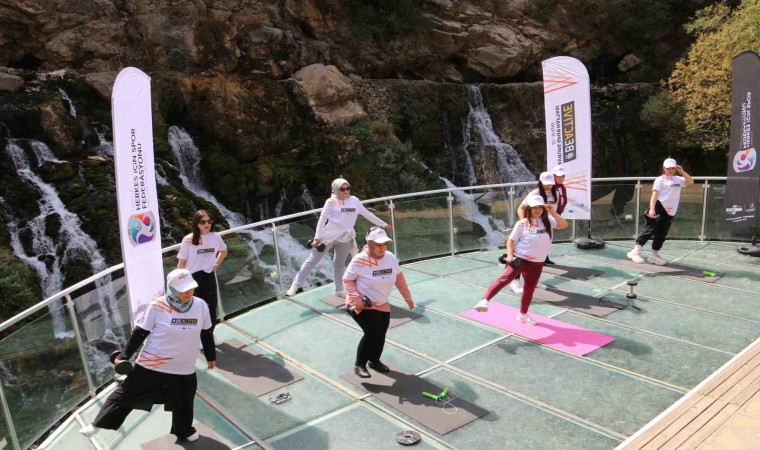 Gençlik ve Spor İl Müdürlüğü ile Herkes İçin Spor Federasyonu İl Temsilciliği’nin ortaklaşa gerçekleştirdiği etkinlikte, Türkiye’de turizm otoriteleri tarafından ziyaret edilmesi tavsiye edilen 10 şelaleden birisi olan Tomara Şelalesi’nde fitness kurslarına katılan 10 kadın ve antrenörler cam seyir terası üzerinde spor etkinliği gerçekleştirdi.