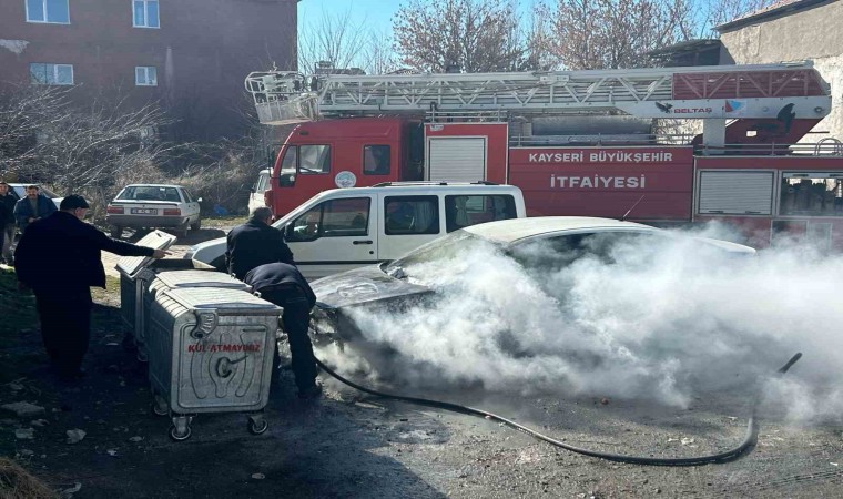 Kayseri’nin Tomarza ilçesinde park halindeyken alev alan otomobil itfaiye ekiplerinin çalışması sonucu söndürüldü.