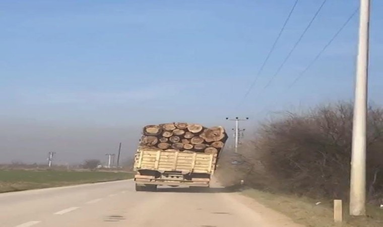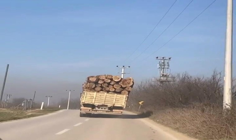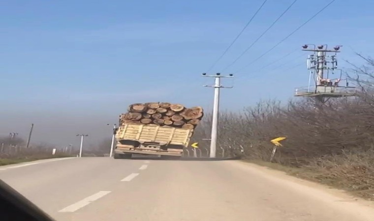 Bursa’nın İnegöl ilçesi kırsal Ortaköy Mahallesi yolu üzerinde meydana gelen olayda tomruk yüklü kamyonun devrilme tehlikesi yaşadığı anlar amatör kameraya yansıdı.