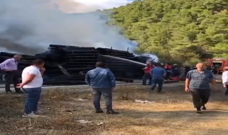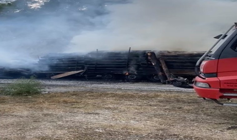 Samsun’da tomruk yüklü tır alevlere teslim oldu.