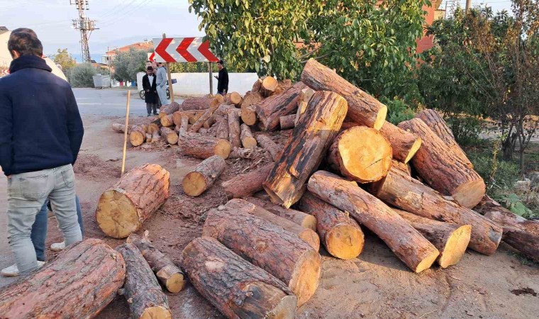 İhbar üzerine olay yerine sevk edilen ekipler, çevrede güvenlik önlemi alırken, kütüklerin devrildiği esnada vatandaşların ve araçların bulunmaması muhtemel bir facianın önüne geçti. Kütüklerin devrilme anı da bir işyerinin güvenlik kamerasına yansıdı.