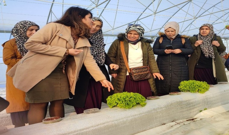 Kocaeli’nin Darıca ilçesinde toprak yerine volkanik cüruf kullanılan serada, kış mevsiminin şartlarına uygun marul yetiştirildi. Kadın çiftçiler, serayı gezerek topraksız tarım sistemi projesi hakkında bilgi aldı.
