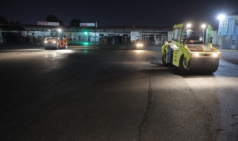 Ağır tonajlı araçların daha rahat giriş, çıkışını sağlamak ve esnaf için kullanım kolaylığı sunmak adına yapılan yenileme çalışması çerçevesinde 11 bin metrekarelik alan sıcak asfalta kaplandı.