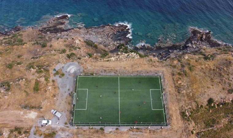 Mersin’in Aydıncık ilçesinde denize sıfır rakımda bir tepeye kurulan şehri ve Toros dağlarını gören halı saha görüntüsü ile dikkat çekiyor. Süper lig takımlarında bile böyle manzaralı bir saha olmadığını belirten gençler, bazen kendi aralarında ’topu atan getirir’ esprisi yaptıklarını ancak üst kısmında file olması nedeniyle böyle bir riskin olmadığını kaydetti.