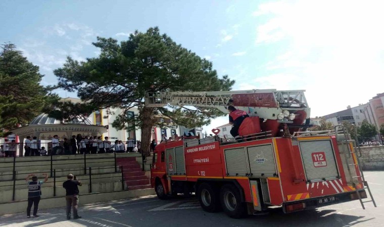 Kırşehir’de ağaçta kalan topu almak için tırmanan bir öğrenci, çıktığı ağaçtan mahsur kaldı.
