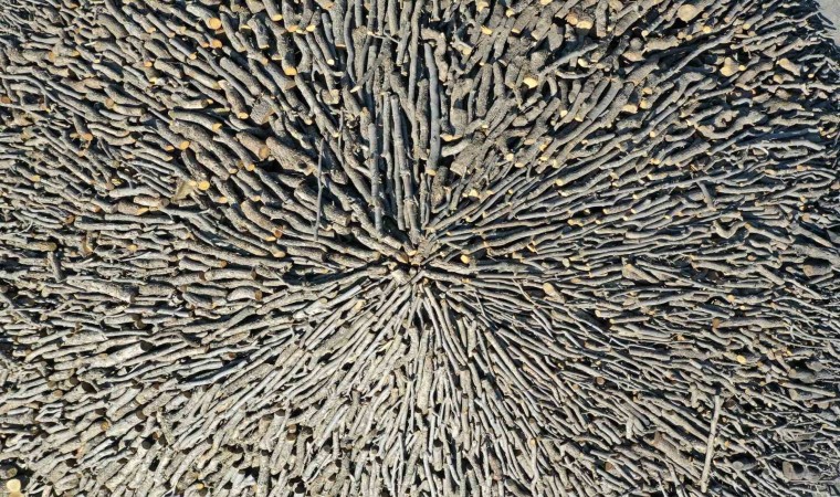 Sivas’ta torakçılar tarafından toplandıktan sonra büyük bir özenle dizilen odun parçaları koni şeklini alırken görüntüleri ise adeta bir sanat eserini andırıyor.