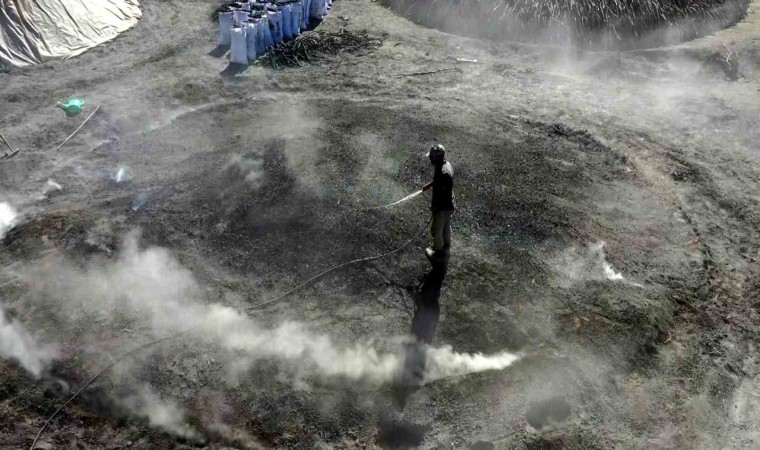 Mahmut Tan, mangal kömürü yapmanın zahmetli olduğunu ifade ederek, “4’üncü ayın 15’inde biz buraya geldik. İlk önce 1 ay kesim yaptık. Sonra odunumuz çektik. Getirip ocak yaptık. Ondan sonra ateşe verdik. 15-20 gün arasında yanacak. Kömür olduktan sonra üstünü naylon ile kapatıp hava almayacak şekilde, ateş sönsün diye. 4-5 gün bekletip daha sonra çıkartmaya başlıyoruz. Kaliteli bir kömür çıkıyor. Diğer işlere göre çok zahmetli ama mesleğimiz oldu. 6-7 senedir bu işi yapıyoruz. Bunları toptancılara satıyoruz. Bir ocakta 15 römork odun var” dedi.