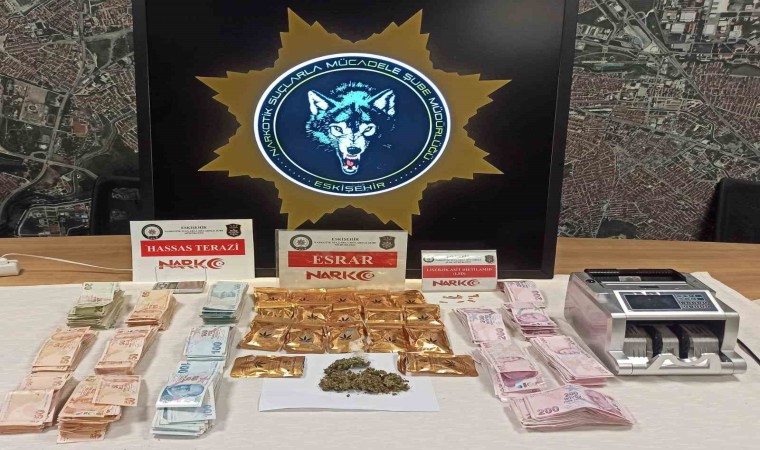 Edinilen bilgilere göre, İl Emniyet Müdürlüğü’ne bağlı Narkotik Suçlarla Mücadele Şube Müdürlüğü ekiplerince Tepebaşı İlçesi’nde torbacı olarak tabir edilen sokak satıcılarına yönelik çalışma gerçekleştirildi. Çalışmalar çerçevesinde Doğukan A. ve Erdil Anıl T. isimli şüpheliler yakalanırken, şahıslara ait evde yapılan aramada, 94,42 gram esrar, 33 adet LSD emdirilmiş pul, 1 adet hassas terazi, suç geliri olarak değerlendirilen 228 bin 840 TL para ve para sayma makinesi ele geçirildi.