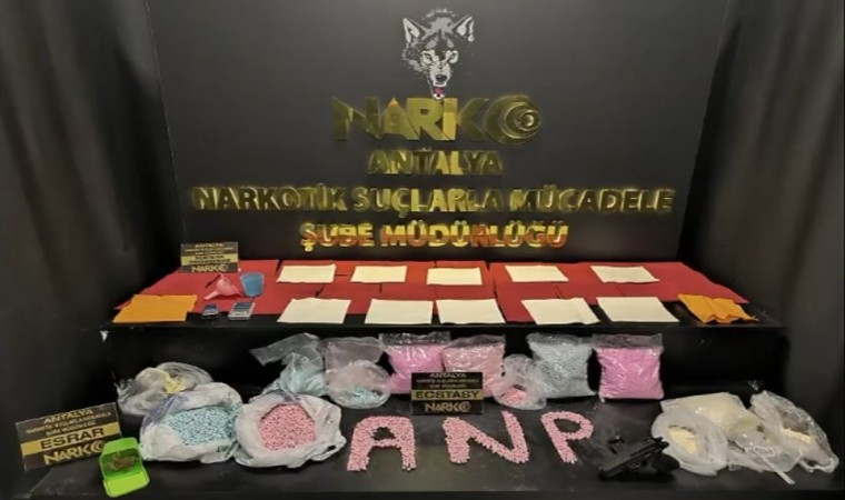 Antalya Cumhuriyet Başsavcılığı koordinesinde gerçekleşen operasyonda şüpheli şahıslar buluşma anında suçüstü yakalandı. Yakalanan şahısların ikametlerinin de aralarında bulunduğu Muratpaşa, Konyaaltı, Kepez ve Alanya ilçelerinde 4 ayrı adreste yapılan operasyonda, 575 adet sentetik kannabinoid A4 maddesi (yaklaşık 3 milyon 676 bin kullanımlık), 30 bin ecstasy hap, 778 gram kokain, 738 gram fubinica, 629 gram esrar, 238 sentetik ecza hap, 5 hassas terazi, 2 tabanca, 10 adet dolu fişek, suçtan elde edildiği değerlendirilen döviz ve Türk lirası ele geçirildi.