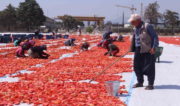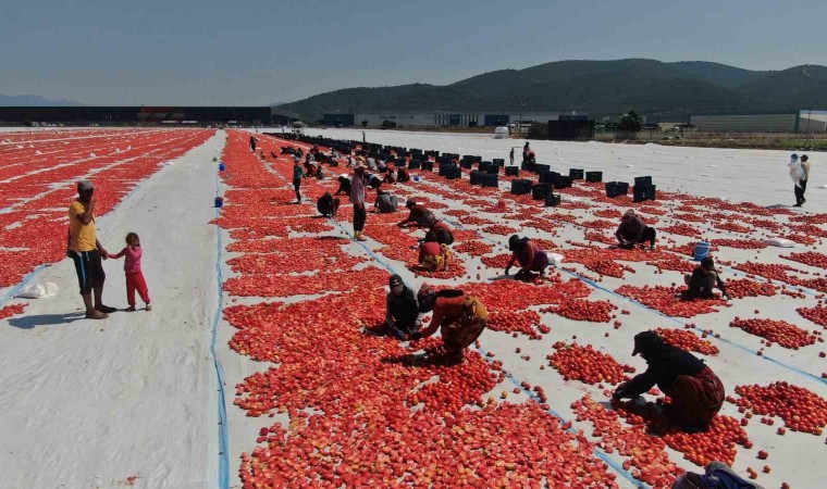 İzmir’in Torbalı ilçesinde yetişen domatesler, beyaz örtü ile kaplı alanlara serilmeye başlandı. Torbalı Ovası’ndaki 45 bin dönümlük bir alanda yetişen kırmızı altınlar, sabahın ilk ışıklarında işçiler tarafından toplanarak kurutulmuş domates için kurulan sergi alanlarına kamyonlarla getiriliyor. İşçiler burada, kurutulmaya uygun olan domatesleri tek tek ikiye bölerek güneşe seriyor. Bir hafta boyunca güneş ve rüzgarla kuruyup tuzlanan domatesler, yine bölgedeki fabrikalar tarafından işlenerek 100 ülkeye ihraç ediliyor. Kurutulmuş domateslerde bu yılki ihracat hedefi ise 100 milyon dolar. Yaş domatesleri özenle kurutan bölgedeki fabrikalar, elde ettikleri ürünleri Avrupa’ya 3 eurodan, Amerika Birleşik Devletleri ve Brezilya’ya da 4 dolardan satıyor. Öte yandan Torbalı’nın coğrafi işaretli kurutulmuş domates modeli, diğer illere de yayıldı. Son yıllarda Malatya, Urfa, Ankara, Manisa gibi şehirlerde de domatesler, kurutulmak üzere güneşe serilmeye başlandı.