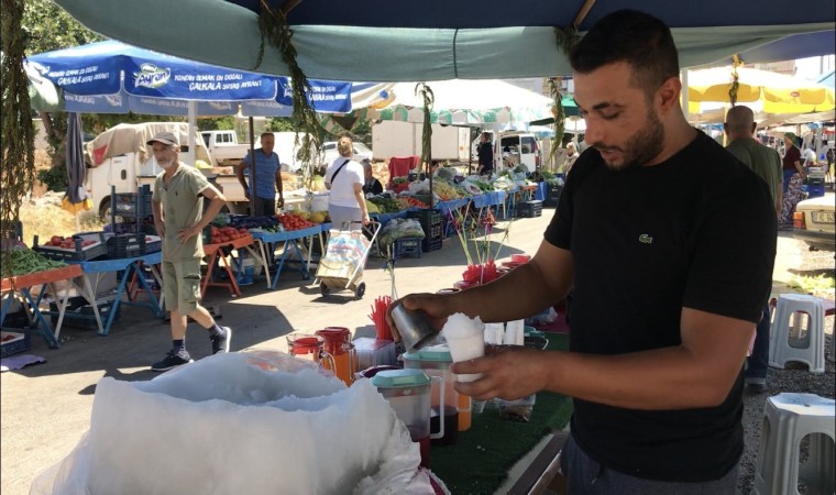 Haftada 2 buçuk ton kar getirdiklerini ve bunun üçte birinin eridiğini belirten Özer, “Haftalık olarak yaklaşık 2 ton pazarlarda karlama yapar satarız. Haftada bir gün yaylaya çıkarız kar getiririz. Her hafta yaylaya çıkarak obruklardan kar çıkarıyorum. Sattıkça tekrar Gündoğmuş’un yaylalarına giderek her hafta yenisini satıyorum. Yaz aylarında sürekli kar obruklarından getirmiş olduğum karları karlama yaparak kar satıyorum. İnsanları serinletiriz" şeklinde konuştu.