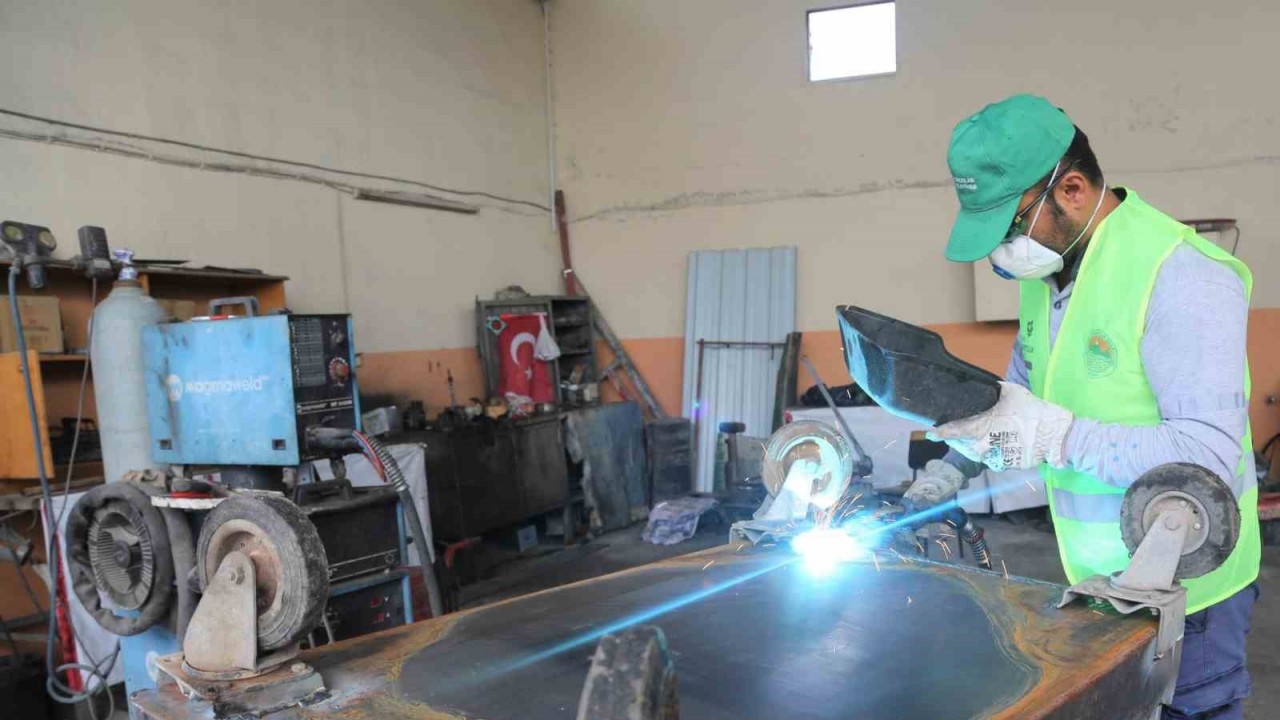 Mersin’in merkez Toroslar ilçe Belediyesi, deforme olmuş çöp konteynerlerini tamir ederek, yeniden hizmete sunuyor.