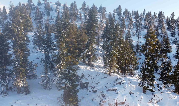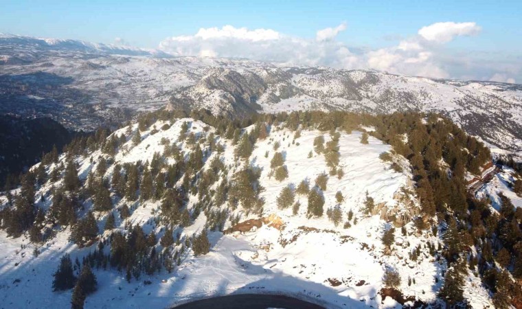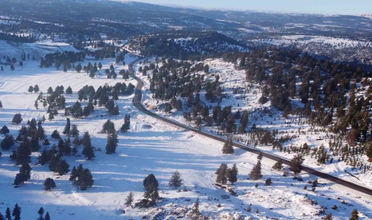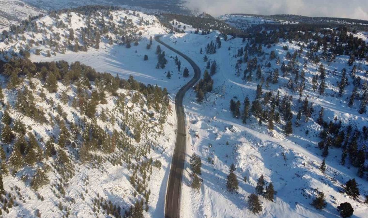 Beyaz örtü ile buluşan Toros dağları dron ile görüntülendi.