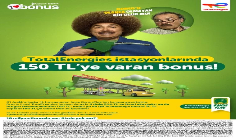 "Kampanya ile kazanılan bonuslar, 05 Ocak - 05 Şubat 2024 tarihleri arasında Bonus üyesi TotalEnergies İstasyonlarında akaryakıt ya da otogaz alımlarında kullanılabilirken kullanılmayan bonuslar 05 Şubat 2024 sonrası geri alınacaktır. Kampanyaya katılan diğer banka bonus kart sahipleri, 16 Kasım -31 Aralık tarihleri arasında bonus üyesi TotalEnergies İstasyonlarında yaptıkları harcamalarda indirim alacak ve bu indirim harcama yaptıkları kartlarının ekstresine yansıtılacaktır."