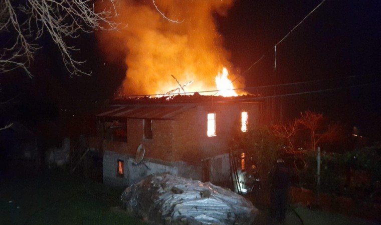 Trabzon’da meydana gelen yangında 2 katlı ev kullanılamaz hale geldi.