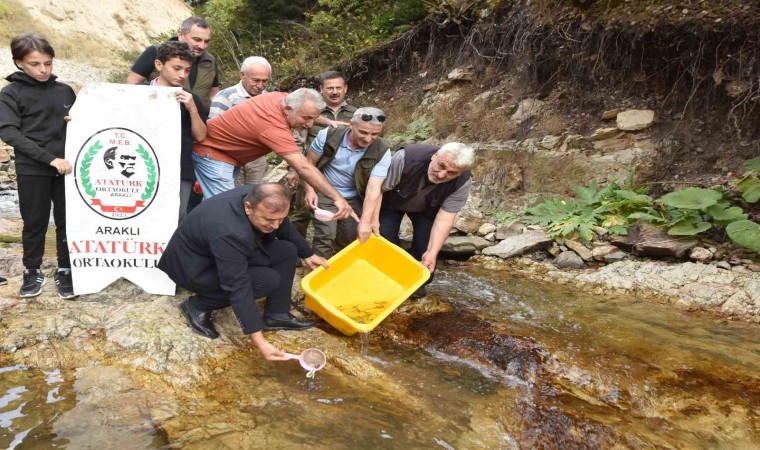 Trabzon’un Araklı ilçesi Bahçecik mevkiinde Karadere’ye 5 bin adet kırmızı benekli doğal alabalık yavrusu bırakıldı.