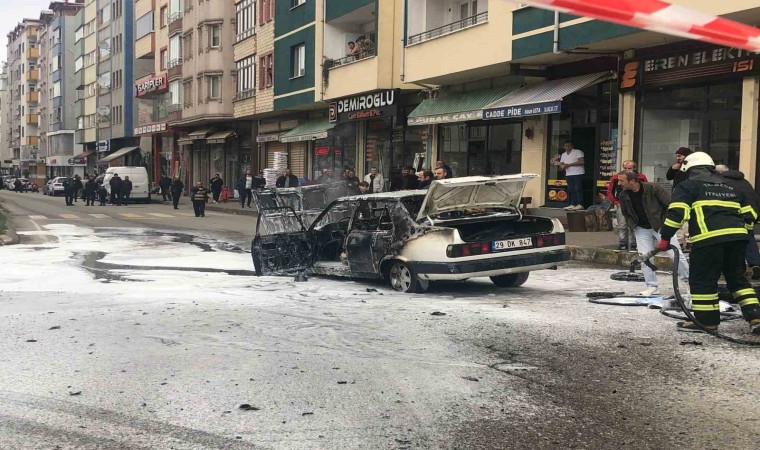 Edinilen bilgiye göre, bugün saat 13.30 sıralarında Trabzon’un Vakfıkebir ilçesinde bir araç sokak ortasında aniden alev alarak yandı. Yanan araca anında müdahale eden itfaiye ekipleri, daha büyük bir felaketi önleyerek yangını söndürdü.