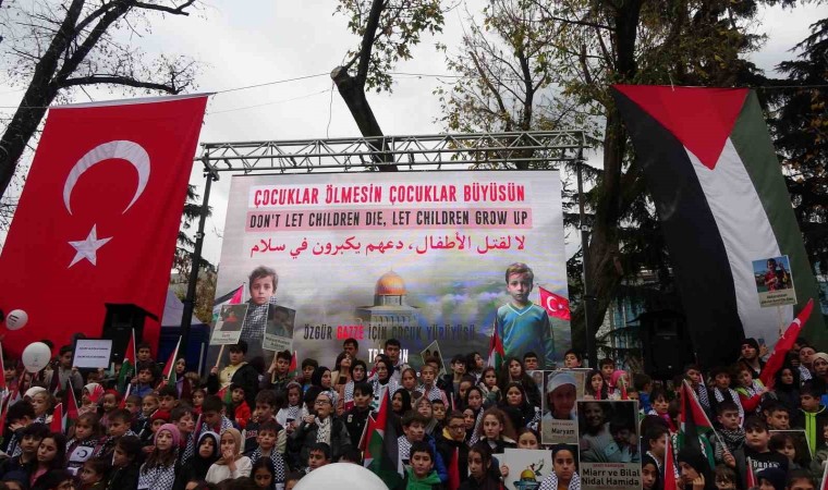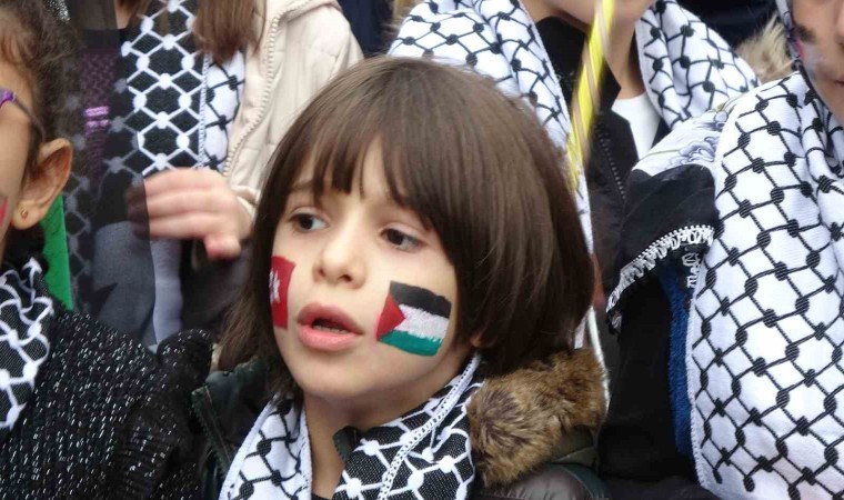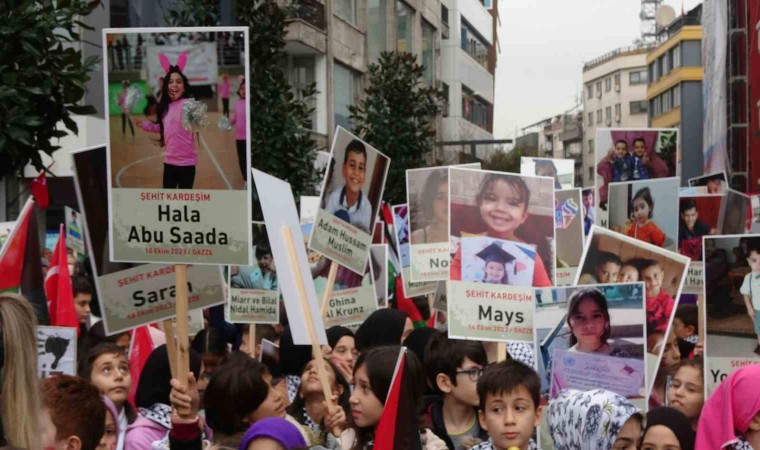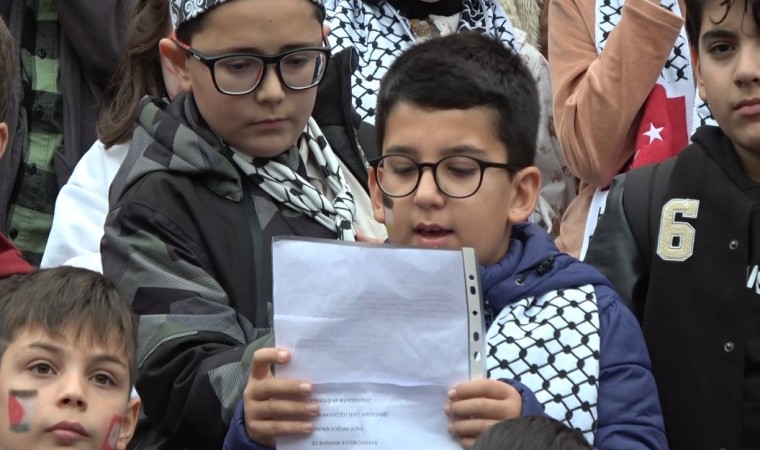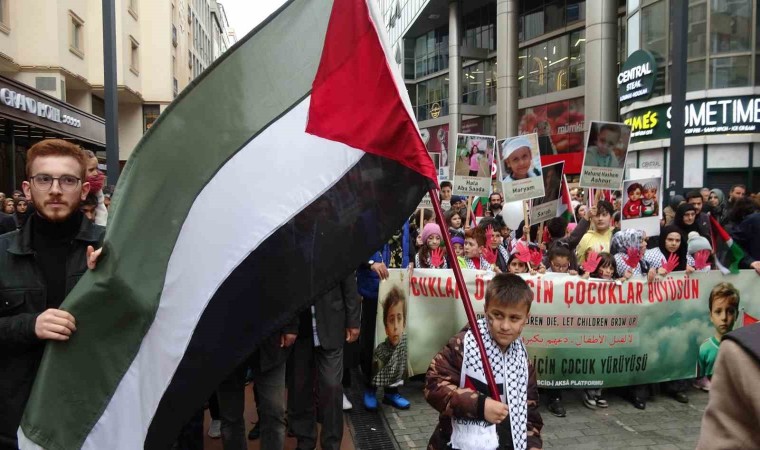 Trabzon’da çocuklar İsrail’in Gazze’de Filistin halkına yaptığı zulmü protesto etmek için yürüdüler.
