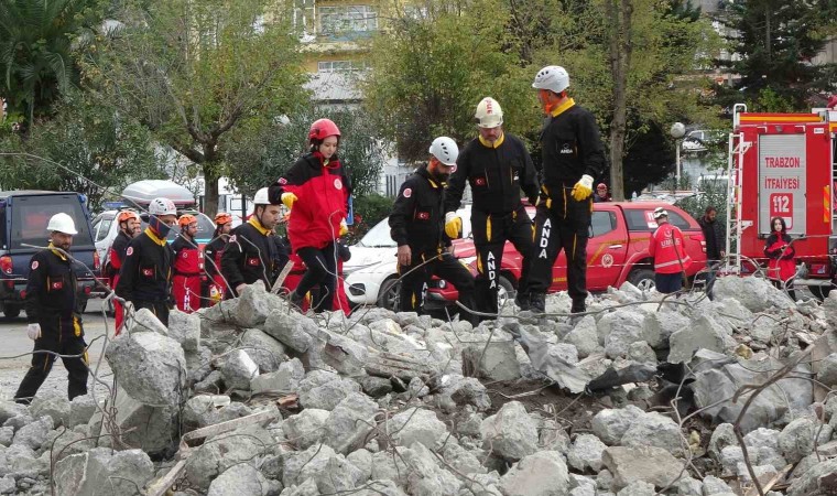 Trabzon’da eski otogar alanında gerçekleştirilen deprem tatbikatı gerçeği aratmadı. Tatbikatta senaryo gereği göçük altında mahsur kalan 5 işçi için arama kurtarma çalışması yapan ekipler 1 kişinin cansız bedenine ulaştı, yaralanan 4 kişinin göçük altından çıkartarak hastaneye ulaştırdı.