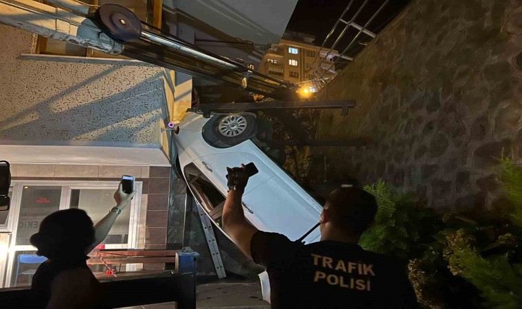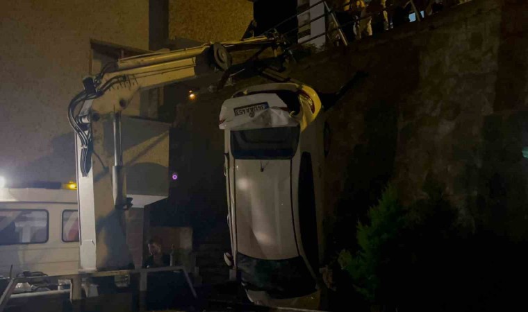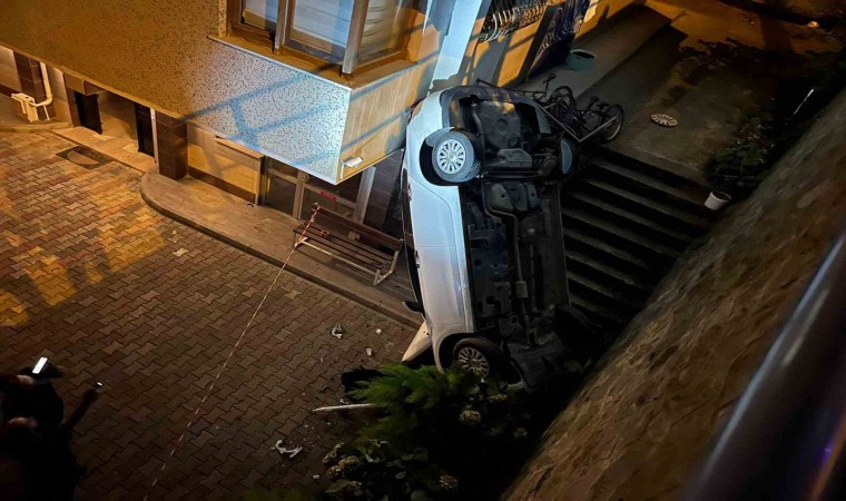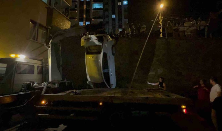 Trabzon’un Ortahisar ilçesinde bir otomobil, yol ile apartman arasında bulunan boşluğa düştü. Kazada 2 kişi yaralandı.